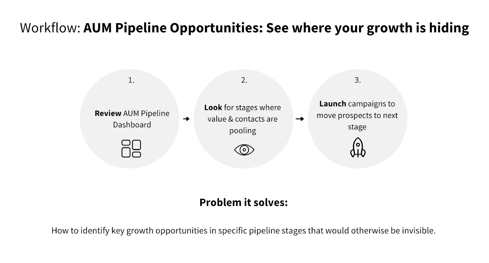 - AUM Pipeline Opportunities shows you the bigger picture: where opportunities are concentrating, where campaigns should focus, and how marketing is moving the needle on growth