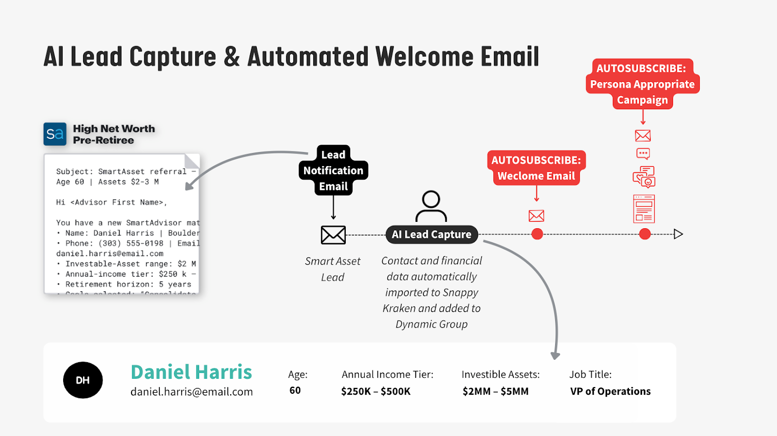 For firms that want to go further, dynamic groups let you automatically filter incoming leads into different audience segments based on criteria from your platform or CRM, and send each segment tailored messaging. For example, high net worth leads could be routed into a concierge-style welcome sequence while business owners receive messaging focused on business tax strategy and succession. But even without that layer, AI Lead Capture and Auto-subscribe alone close the speed-to-lead gap that most firms don't realize they have.